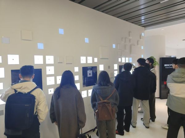 随后,讲解员围绕南京国家芯火平台的“公共技术服务”、“产业人才培养”、“生态促进服务”三大核心板块进行了专题分享,全面展现了该平台为区域芯片企业赋能、为青年人才成长搭台的实践成果。参观过程中,同学们认真聆听记录,就专业学习与产业需求的衔接等问题与讲解员进行了交流。