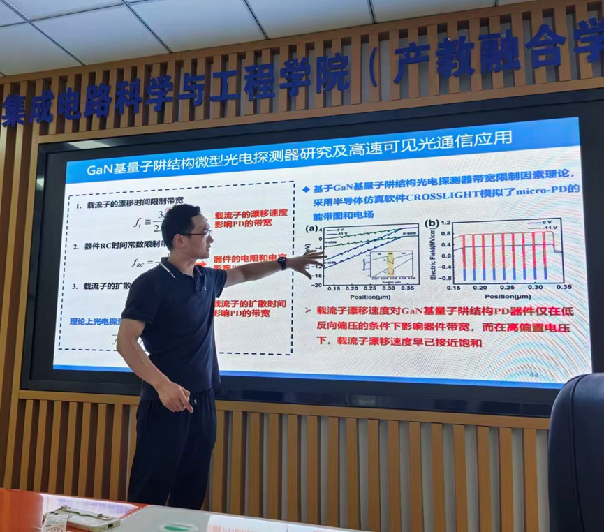 7月26日下午,复旦大学教授、博士生导师、国家级青年拔尖人才田朋飞教授应bv1946伟德官网邀请在仙林校区电光科学楼B223会议室作题为“基于氮化镓micro-LED及探测器的高速光通信系统”的学术报告。报告由朱刚毅副教授主持,20余位学院师生参加活动。