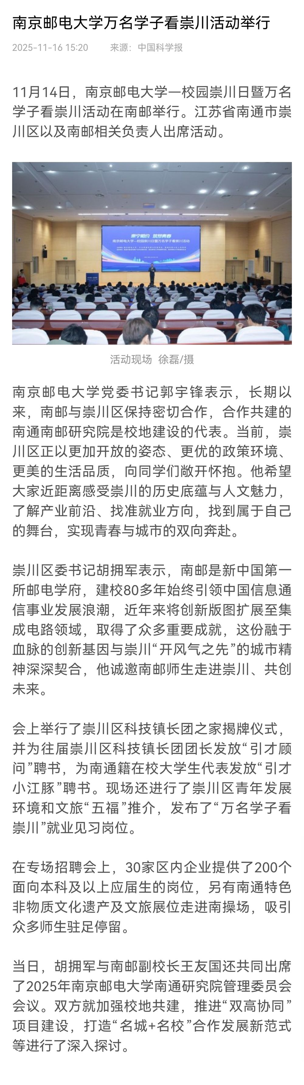 【科学网】bv1946伟德官网万名学子看崇川活动举行