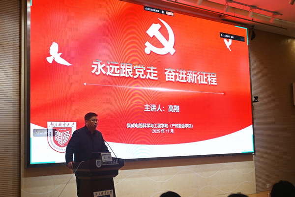在授课中,高书记结合党的二十届四中全会精神以及“两弹一星”功勋科学家的光辉事迹,深入剖析了新时代青年的使命与担当。他指出,当前国家正处于以中国式现代化全面推进中华民族伟大复兴的关键时期,作为集成电路专业的学子,更应弘扬科学家精神,瞄准国家重大战略需求,为实现高水平科技自立自强贡献力量。