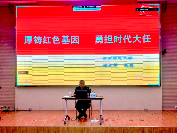 储教授以《厚铸红色基因 勇担时代大任》为主题,进行授课。他阐述了红色基因作为中国共产党人精神谱系的核心内涵,强调其是信仰、奉献与初心的体现;回顾了南邮从战邮干训班到“双一流”高校的发展历程,并列举多位杰出校友实例,指出红色基因应内化为精神动力。面向新时代,他呼吁青年增强本领、立足岗位、勇于创新,以实际行动担当民族复兴的历史重任,在知行合一中谱写时代华章。
