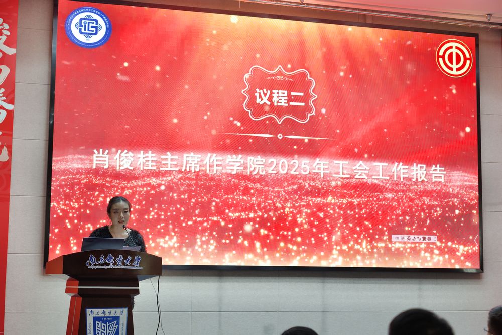 随后,学院分工会主席肖俊桂作2025年度工会工作报告,系统回顾了过去一年工会在服务教职工、推进民主管理、丰富文化生活等方面的工作成效,并提出了2026年工会工作的初步设想。